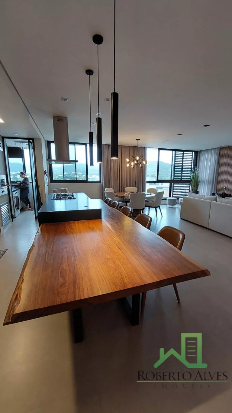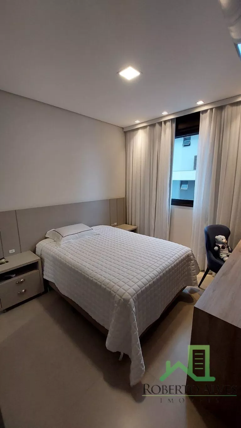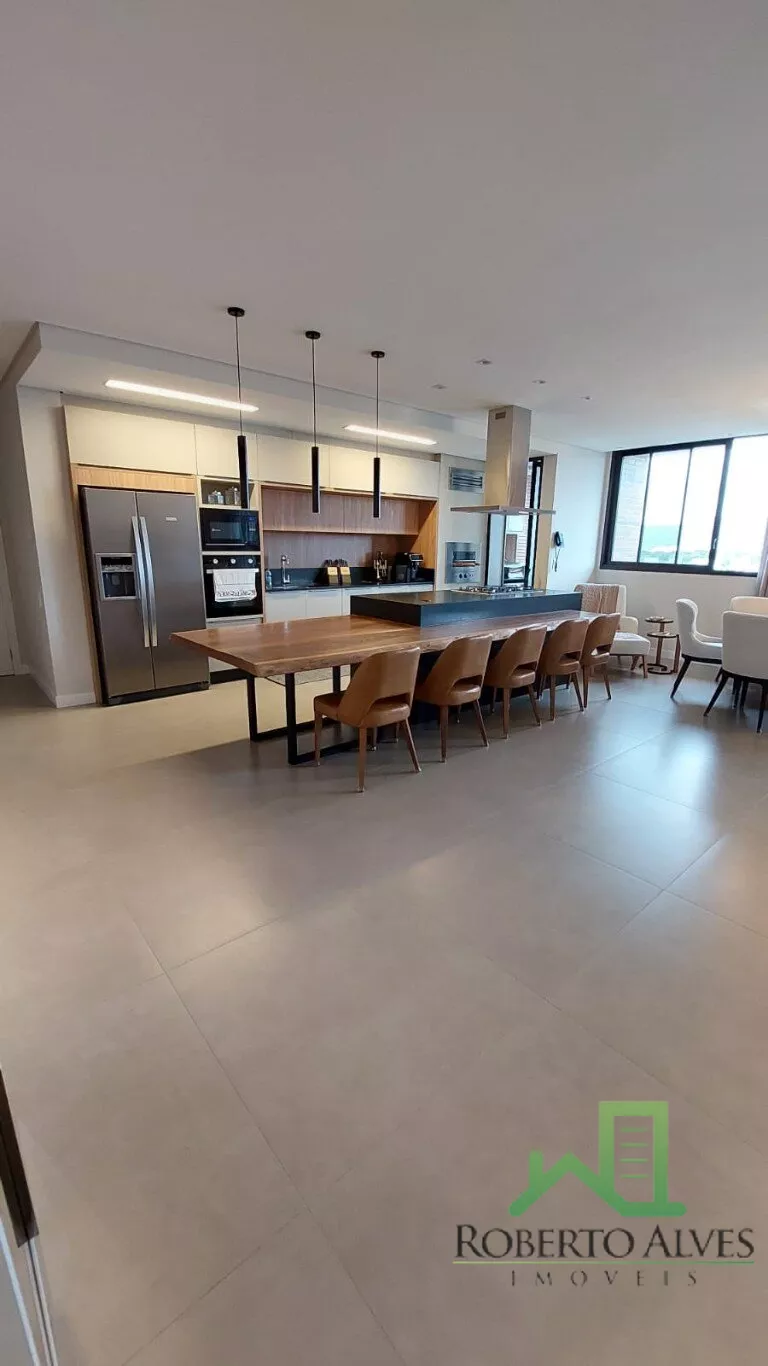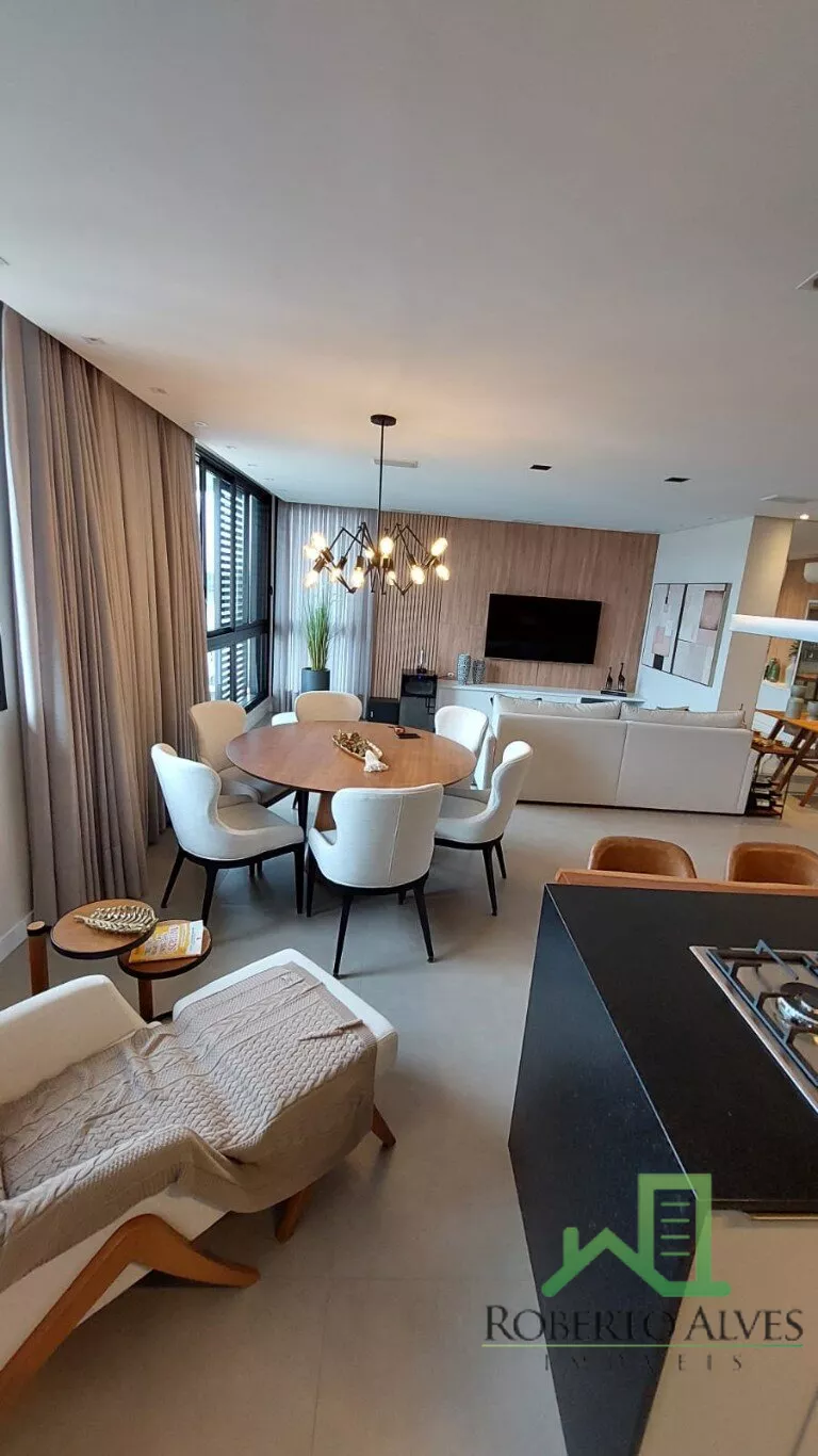 Com 155 m² de área privativa, o imóvel conta com 3 suítes, sala de estar integrada à sala de jantar, cozinha planejada e 2 vagas de garagem.