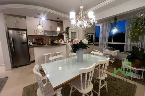 O imóvel conta com 2 dormitórios, sendo 1 suíte, além de uma sala de estar e jantar integradas, proporcionando um ambiente amplo e aconchegante para o dia a dia. A cozinha funcional conecta-se à lavanderia, garantindo praticidade na rotina.
