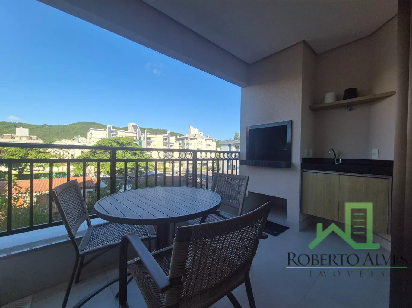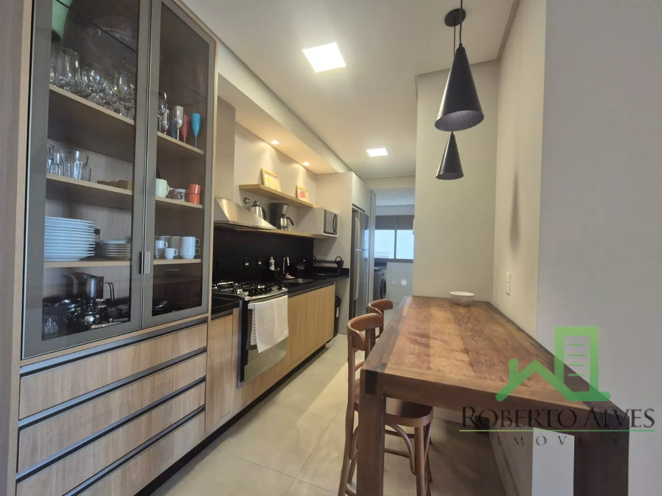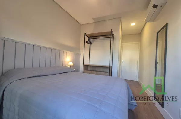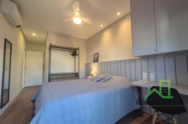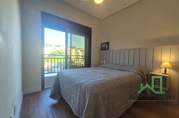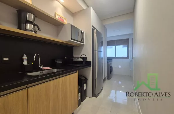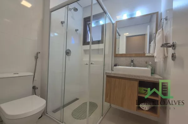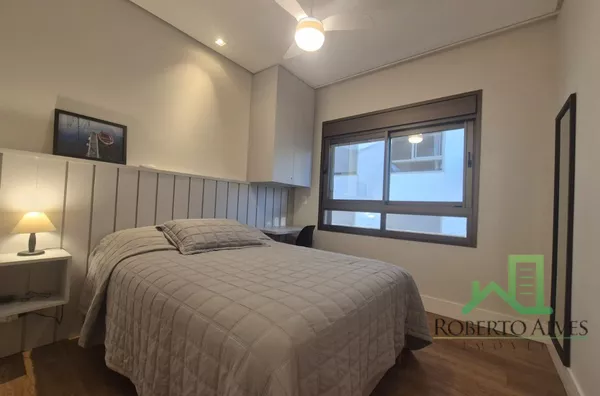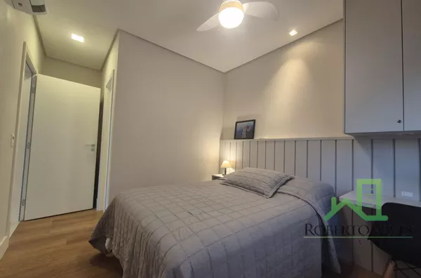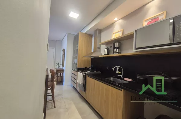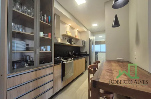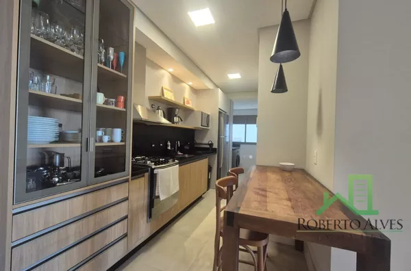 Totalmente mobiliado, o imóvel conta com 3 suítes, cozinha com área de serviço, lavabo, sala de estar e jantar integradas e sacada com churrasqueira.