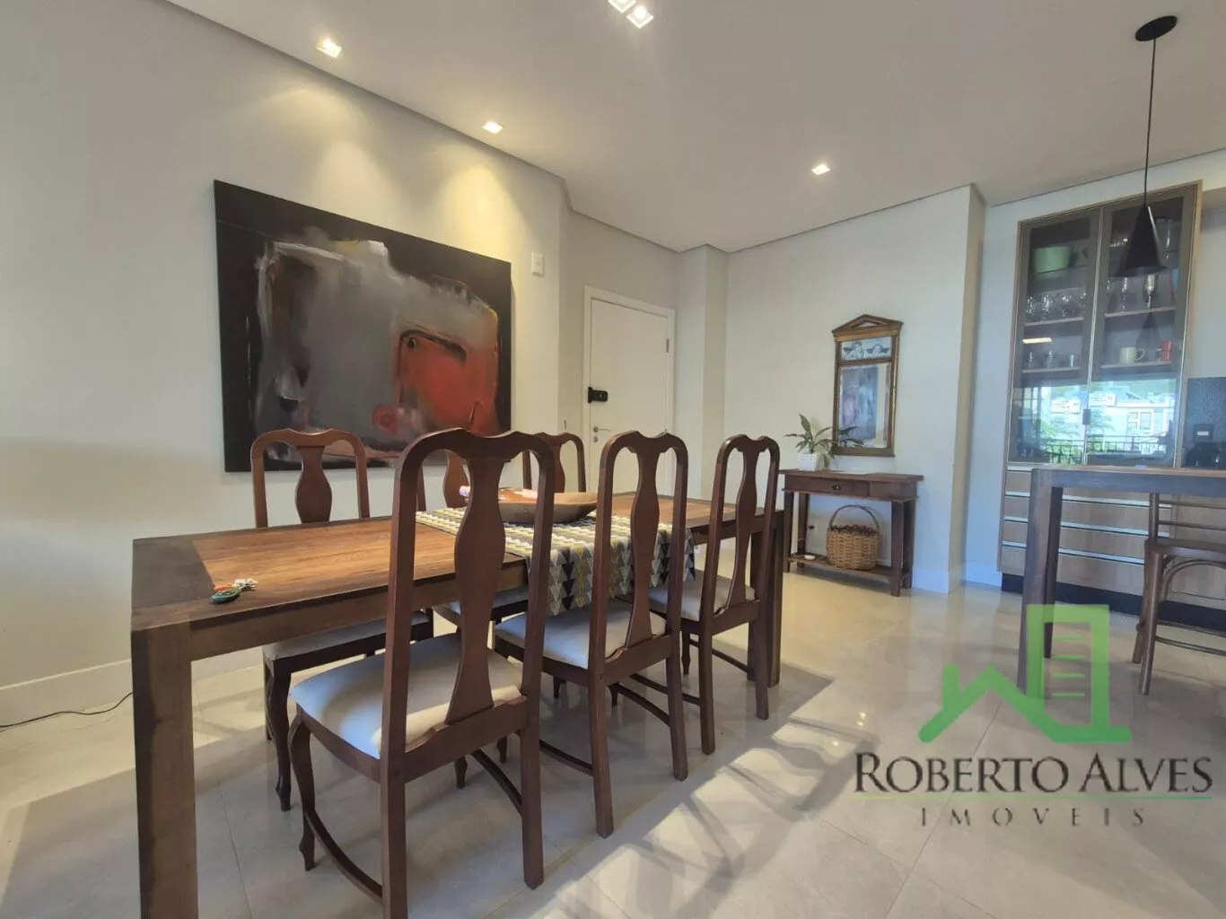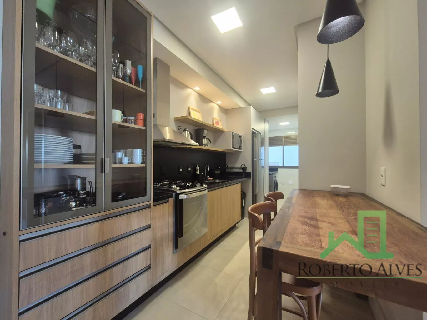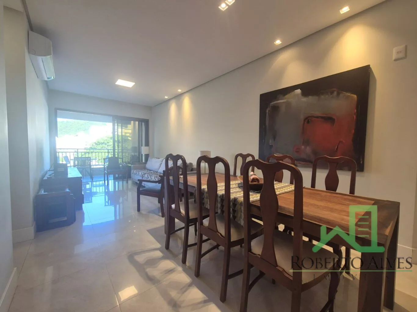 Totalmente mobiliado, o imóvel conta com 3 suítes, cozinha com área de serviço, lavabo, sala de estar e jantar integradas e sacada com churrasqueira.