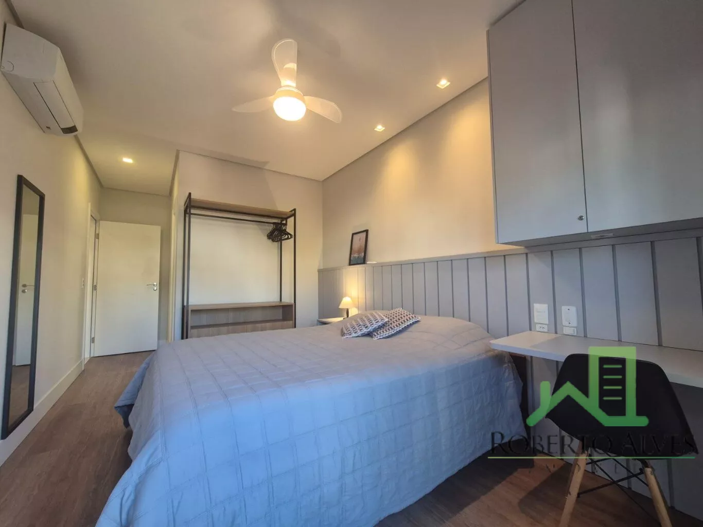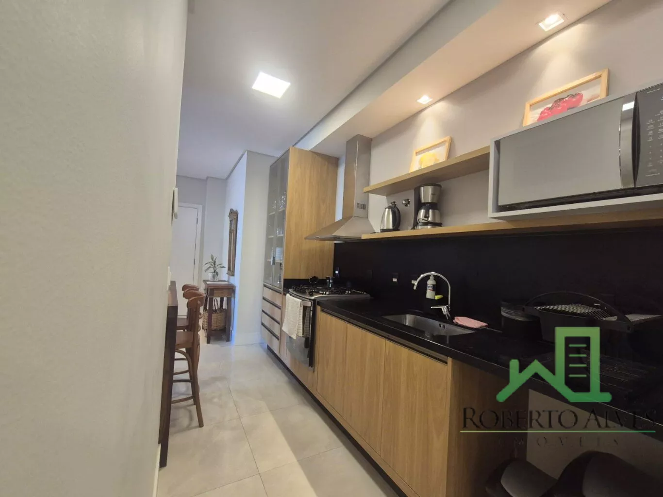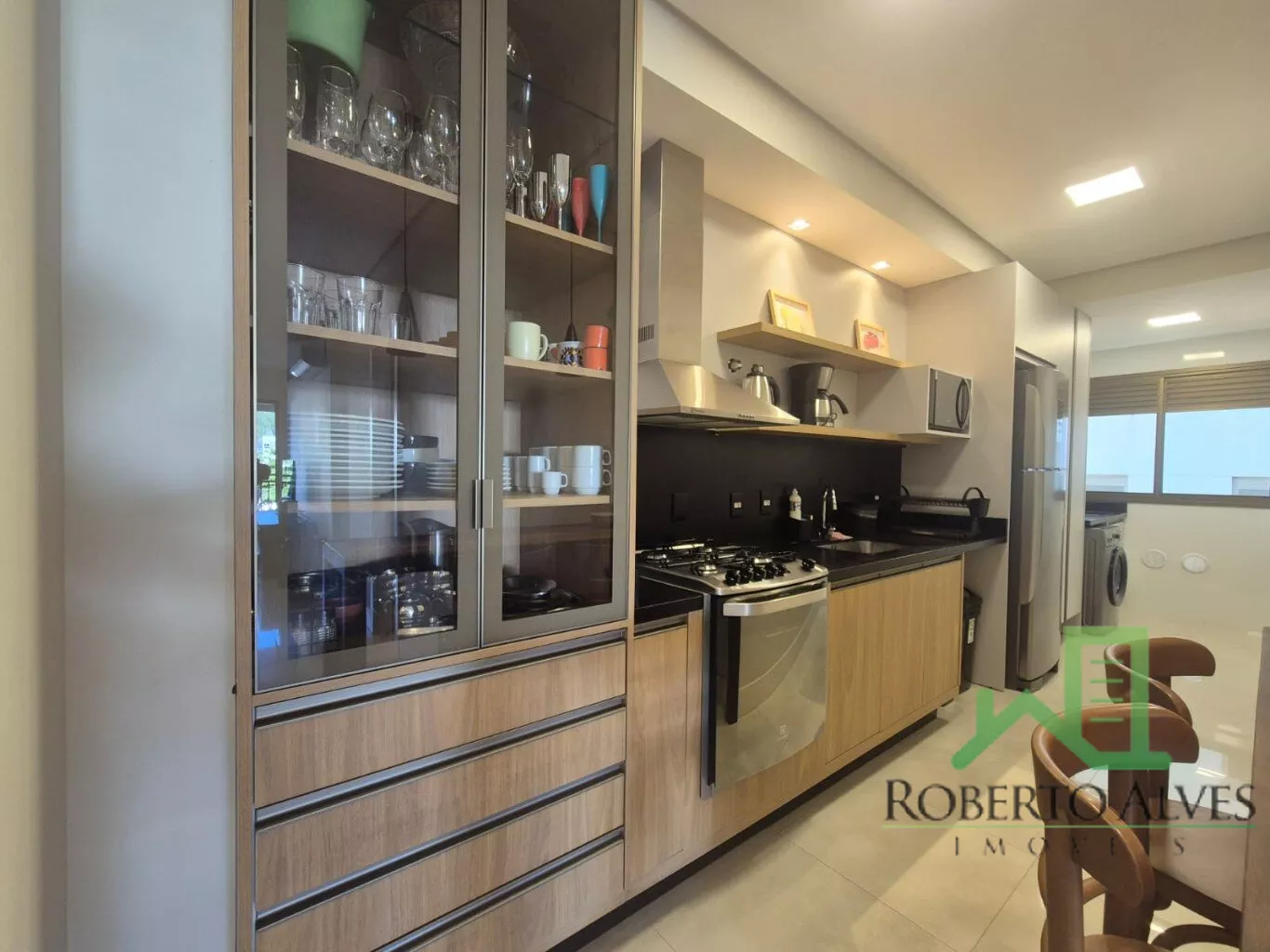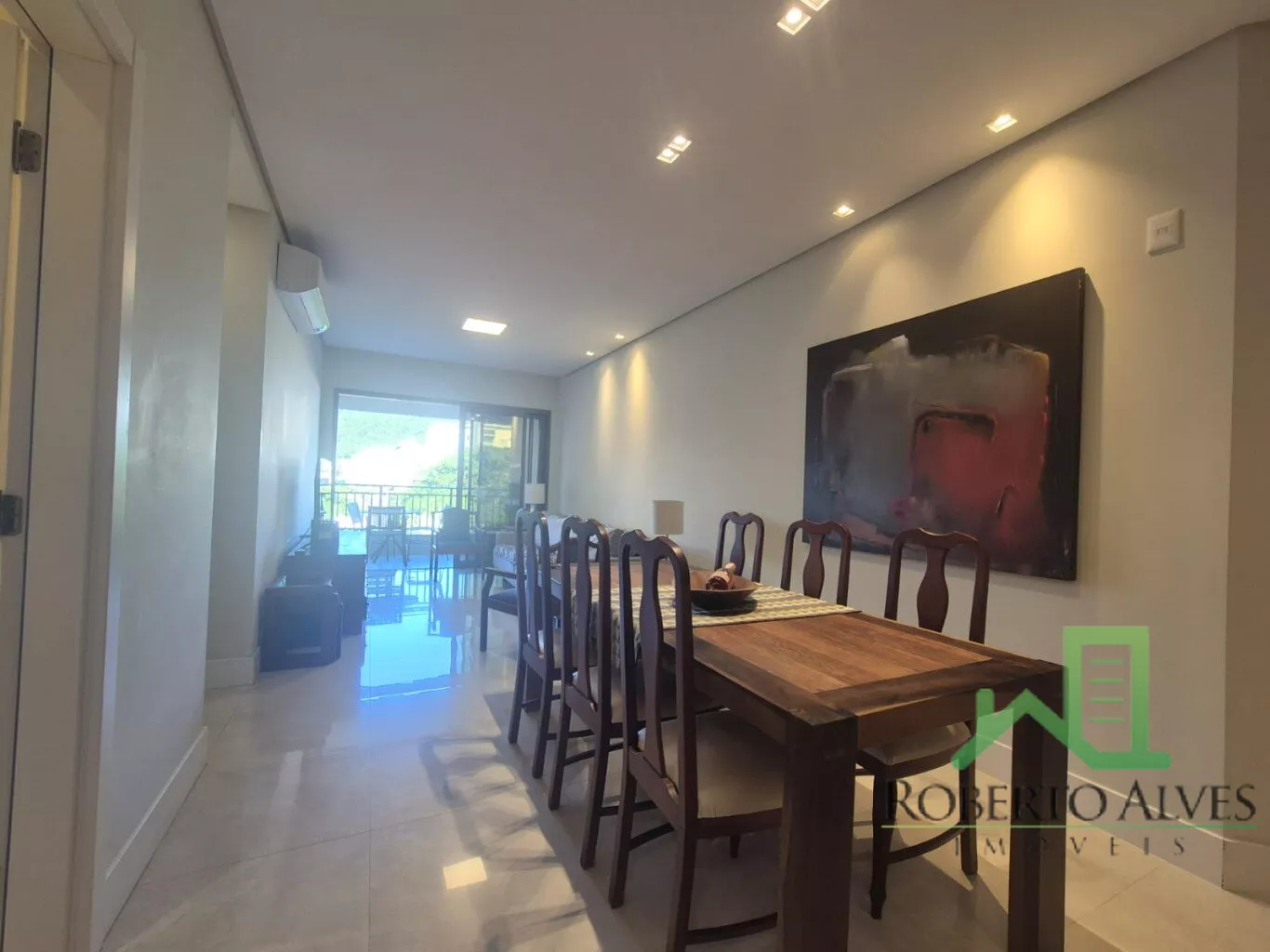 Totalmente mobiliado, o imóvel conta com 3 suítes, cozinha com área de serviço, lavabo, sala de estar e jantar integradas e sacada com churrasqueira.