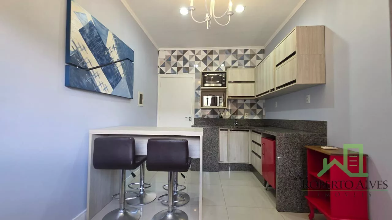 Sala de estar e cozinha integradas, tornando o ambiente moderno e prático.