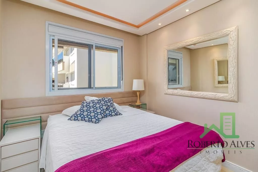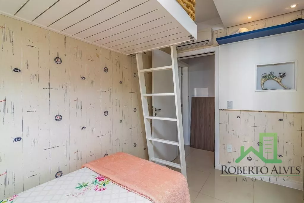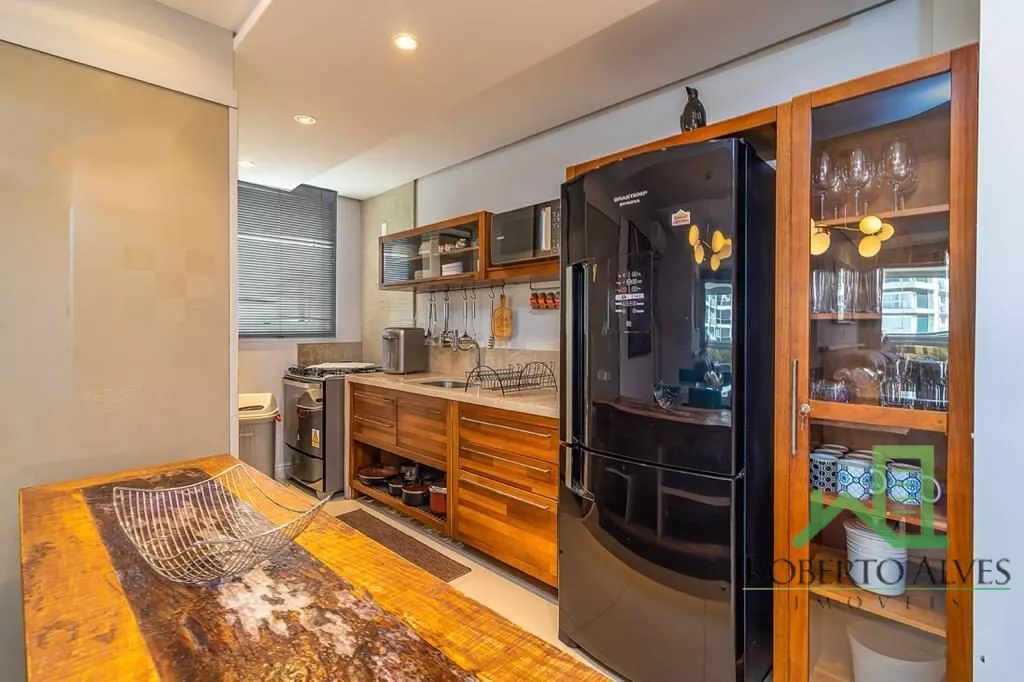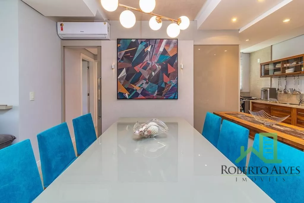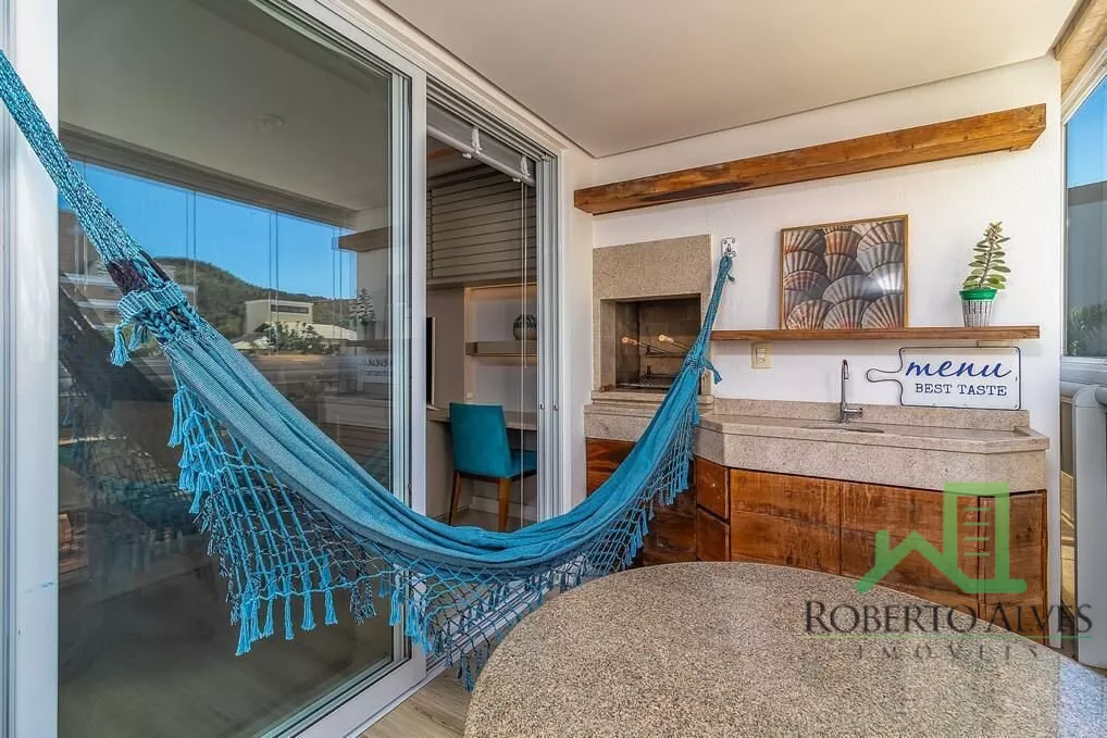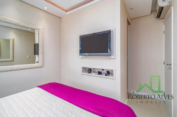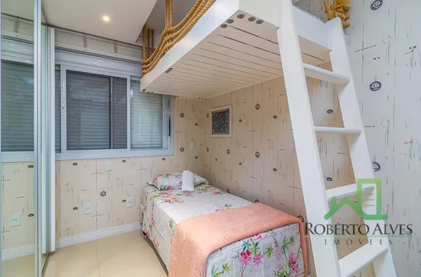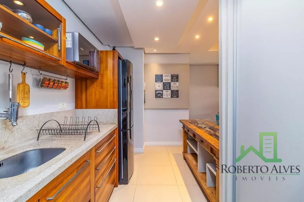São 2 dormitórios, sendo 1 suíte, sala de estar e jantar integradas, cozinha planejada, lavanderia funcional e uma agradável sacada com churrasqueira com vista para a piscina .