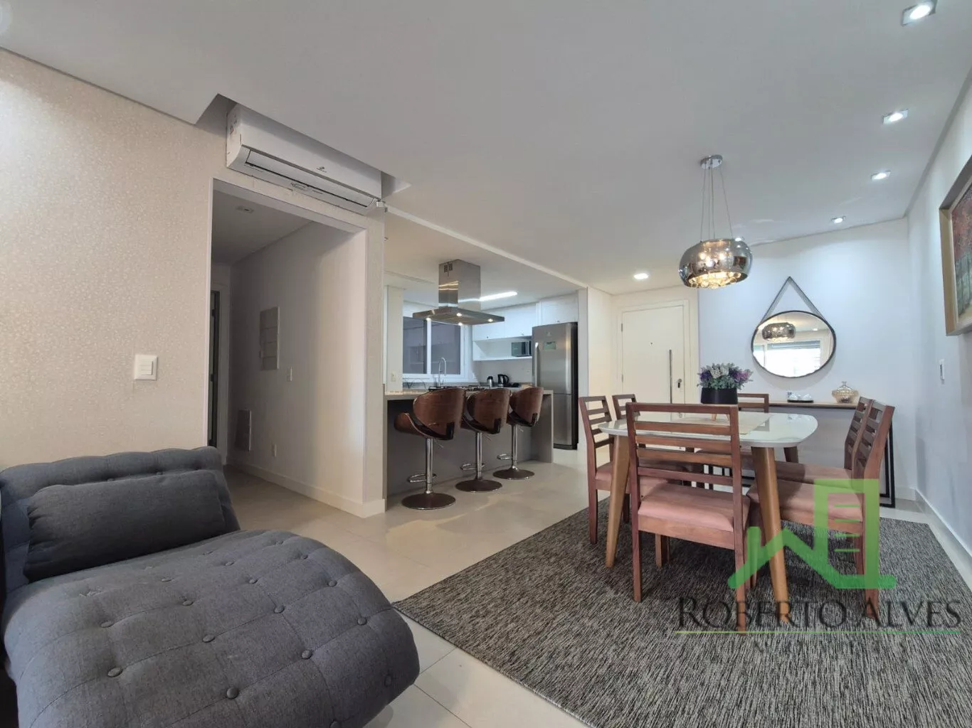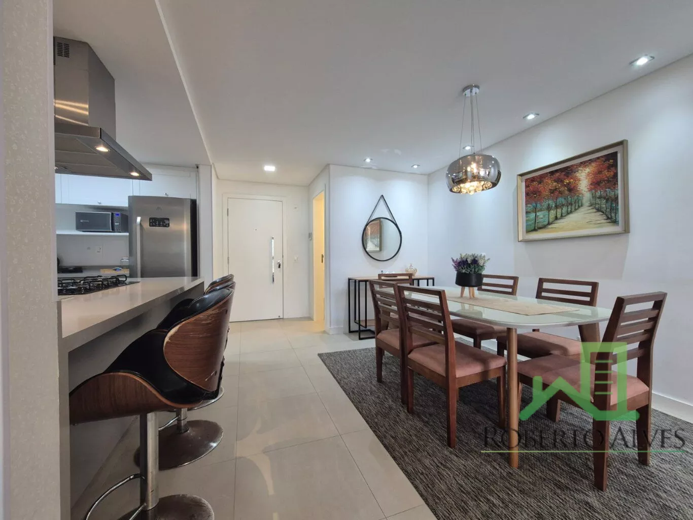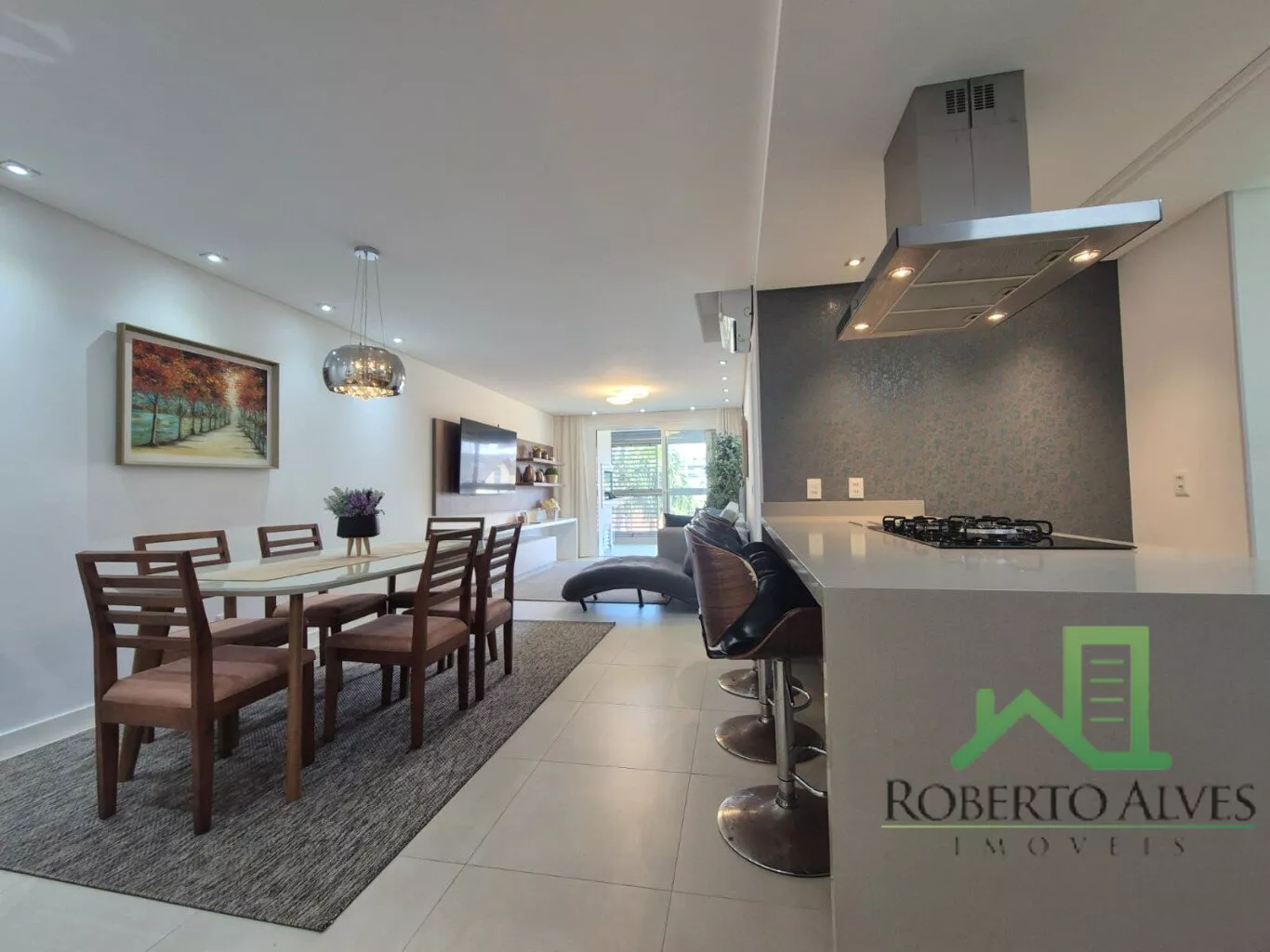 Sala de estar e jantar integradas;