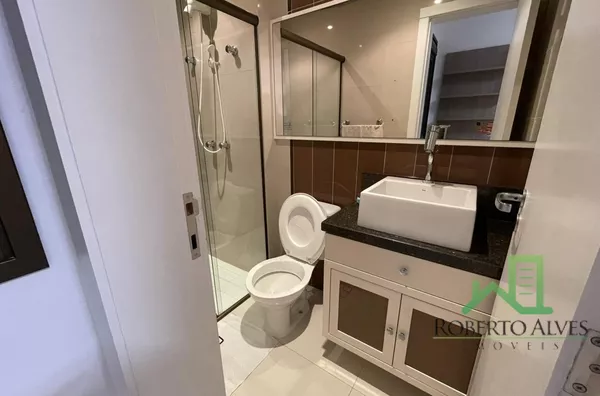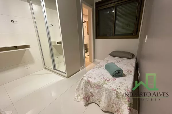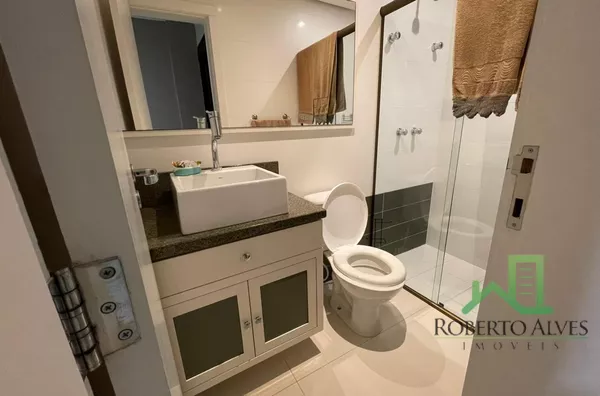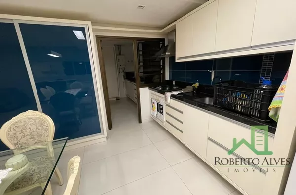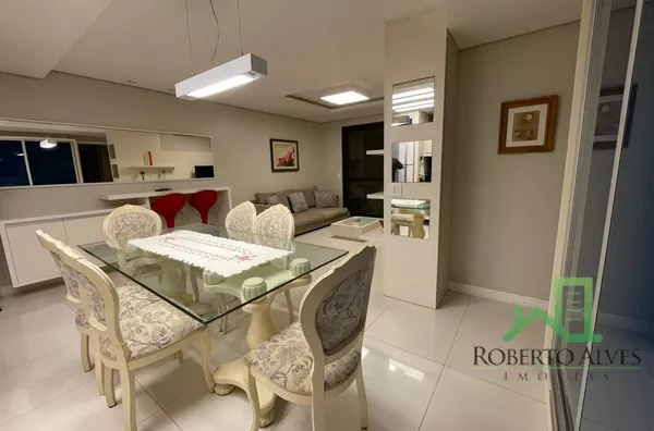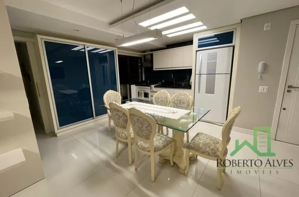 O imóvel possui 3 suítes, lavabo, sala de estar e jantar integradas, cozinha equipada, área de serviço e sacada com churrasqueira.