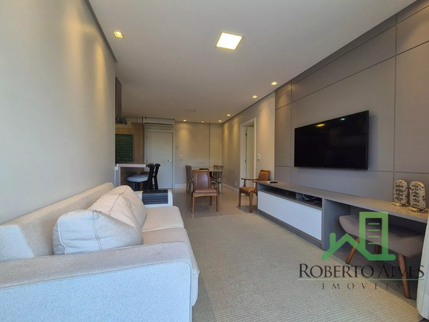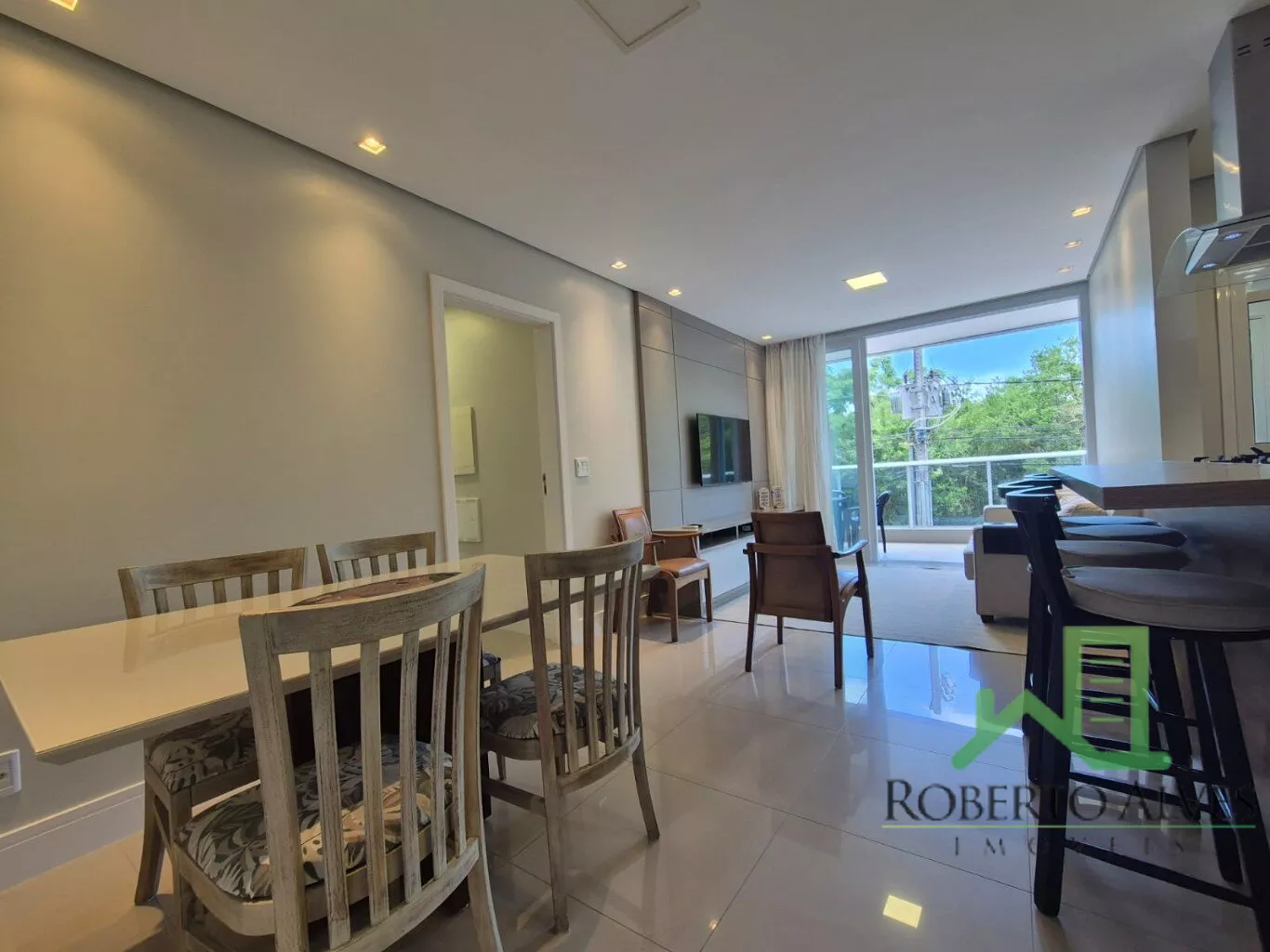 Apartamento confortável em Jurerê, com 2 quartos (1 suíte), sala de estar e jantar integradas, cozinha completa, área de serviço e banheiro social. Destaque para a ampla sacada com churrasqueira, perfeita para curtir bons momentos.