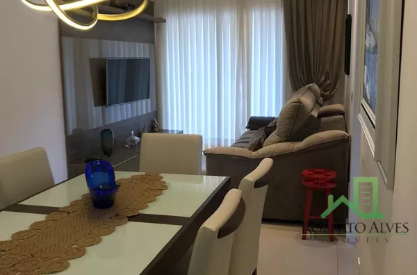 O imóvel possui 2 suítes, sala de estar, cozinha funcional, área de serviço, sacada com churrasqueira e 1 vaga de garagem.
