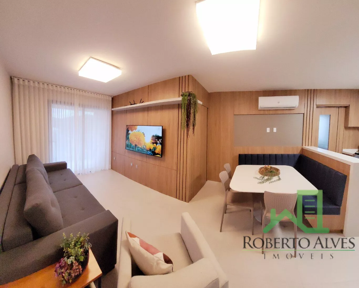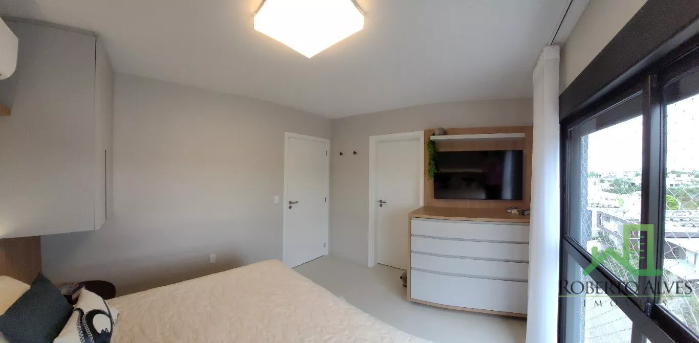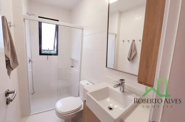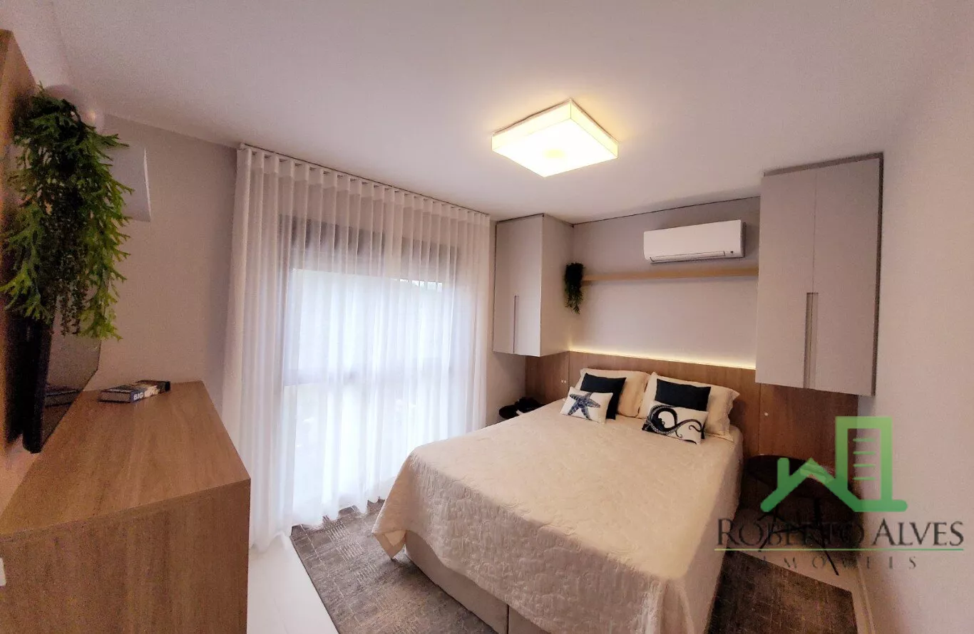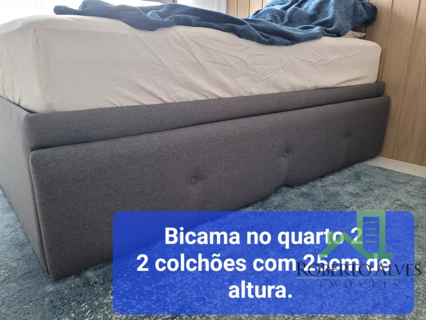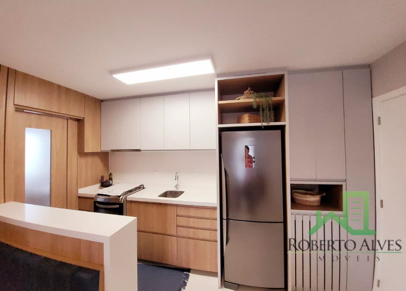 Possui 2 dormitórios (sendo 1 suíte), banheiro social, sala aconchegante, cozinha equipada, área de serviço, sacada com churrasqueira e 2 vagas de garagem.