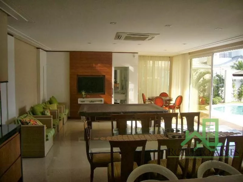 Decoração em Alto Padrão; 3 Pavimentos; 5 Suítes Sendo uma Máster com Hidromassagem e Closet; 7 Banheiros; Dependência Completa de Empregada; Lavanderia; Alarme; Living no Segundo e Terceiro Pavimento; Sala de Esta,Jantar,Jogos e de Televisão; Televisões em LCD em Todos Ambientes; Lareira; Armários Embutidos; Lavabo; Área de Serviço; Despensa; Churrasqueira; Jardim; Garagem para 4 Carros;