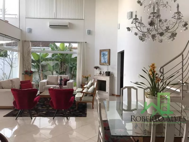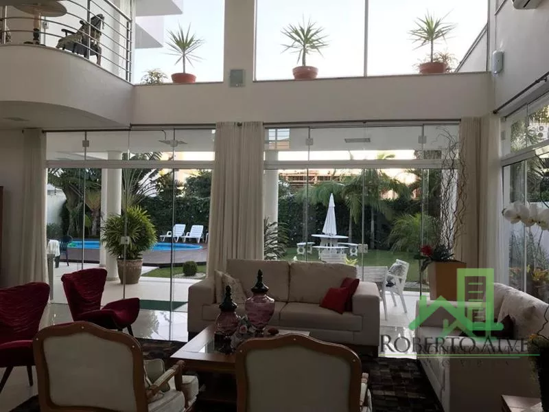 5 Suítes (1 Máster); Sala de Estar com Lareira; Sala de Jantar; Estar Intimo; Lavabo; Cozinha; Área de Serviço; Churrasqueira; Piscina; Jardim; Fitness Center; Ar Condicionado em Todos Ambientes; Dependência de Empregada Completa; Sacada; Garagem para 5 Carros;