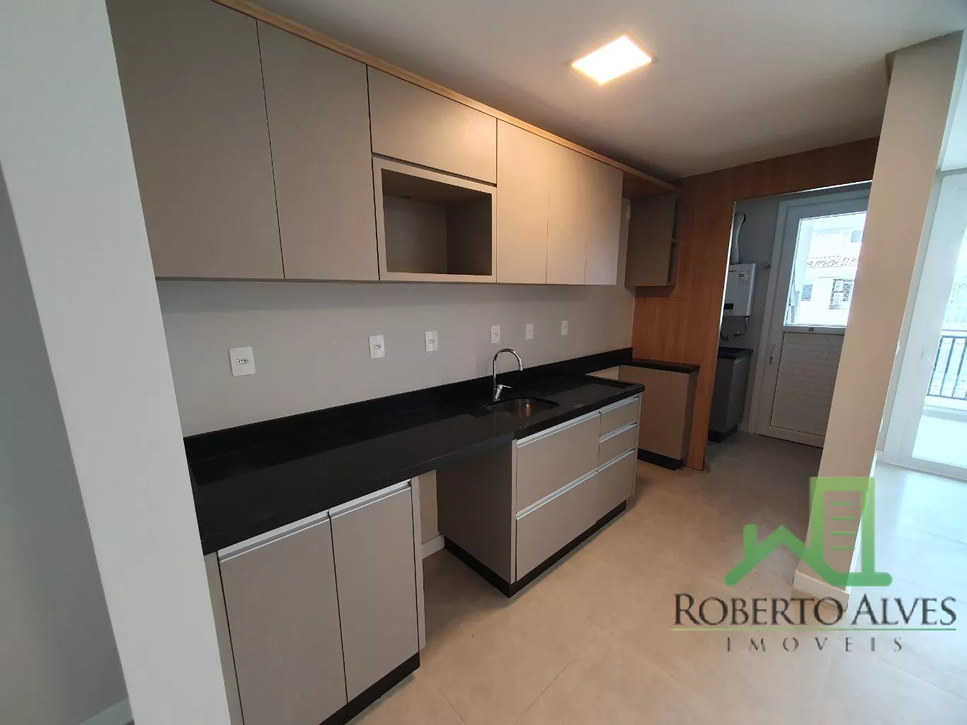 Apartamento com 94,00 m², semimobiliado. Armários embutidos na cozinha, área de serviço, e dormitórios.