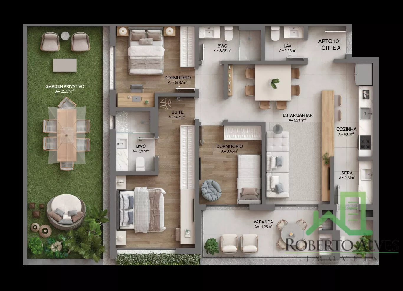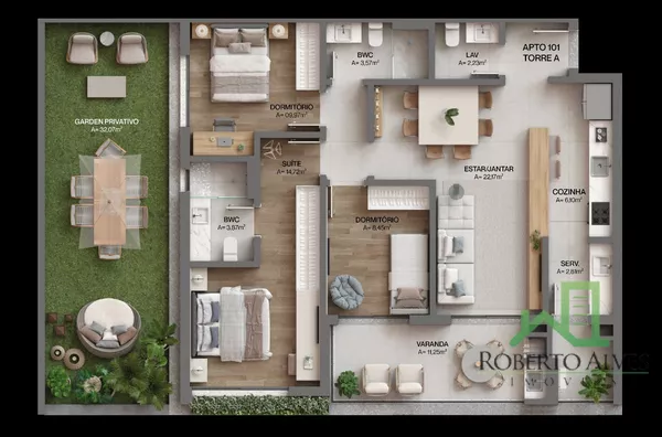 APARTAMENTO GARDEN DE 141,55M² COM 3 DORM (1 SUÍTE).