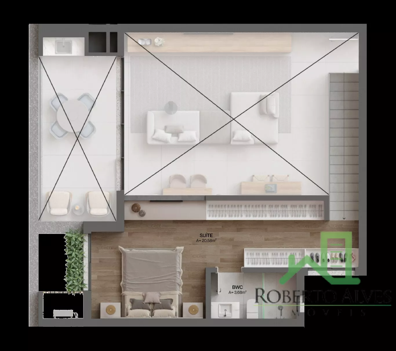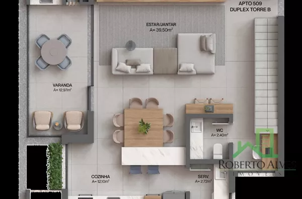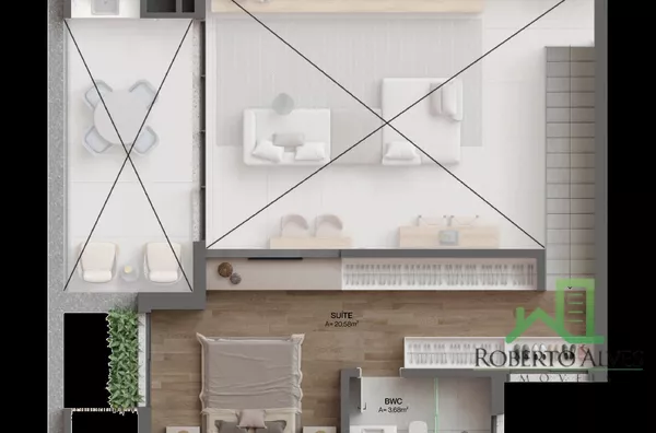 - Porcelanato 90x90cm em sala, cozinha, área de serviço e banheiros