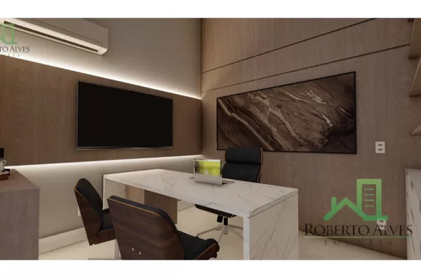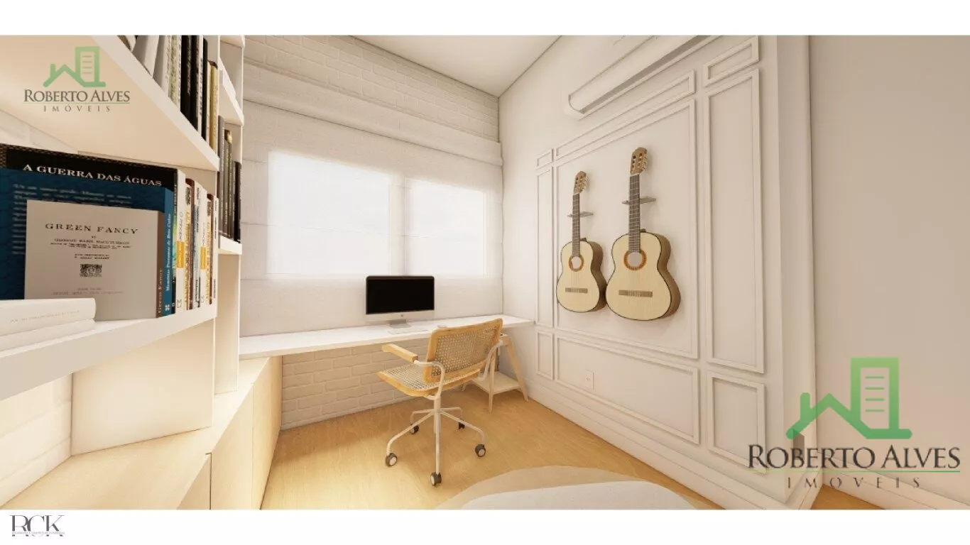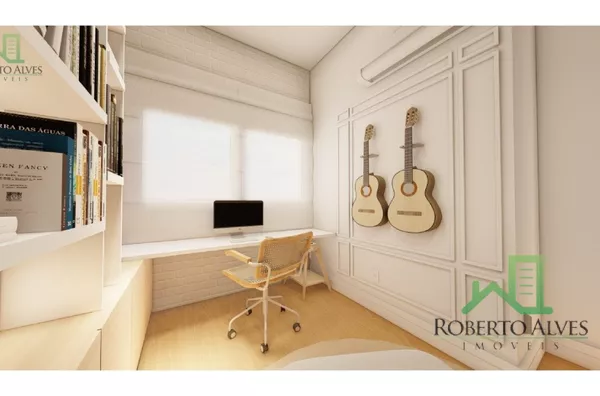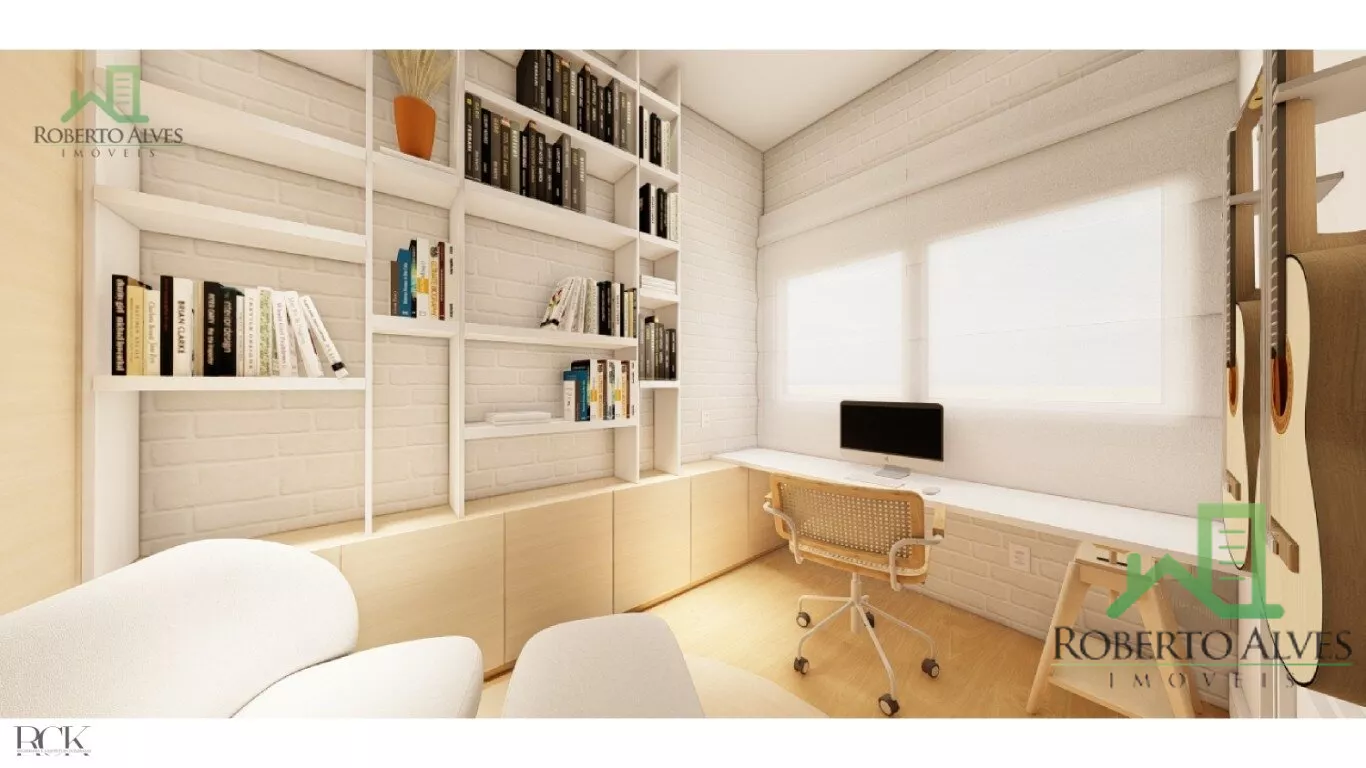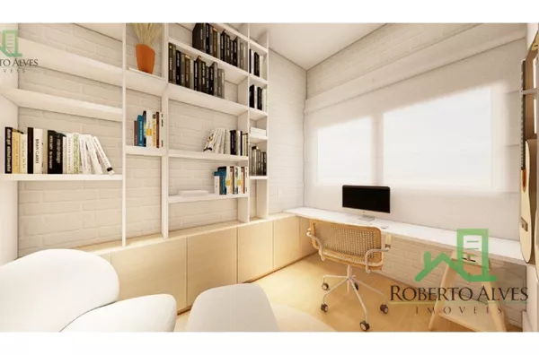 Garagem com capacidade para 2 veículos, hall de entrada com escritório, lavanderia e studio com lavabo e entrada privativa pela garagem.