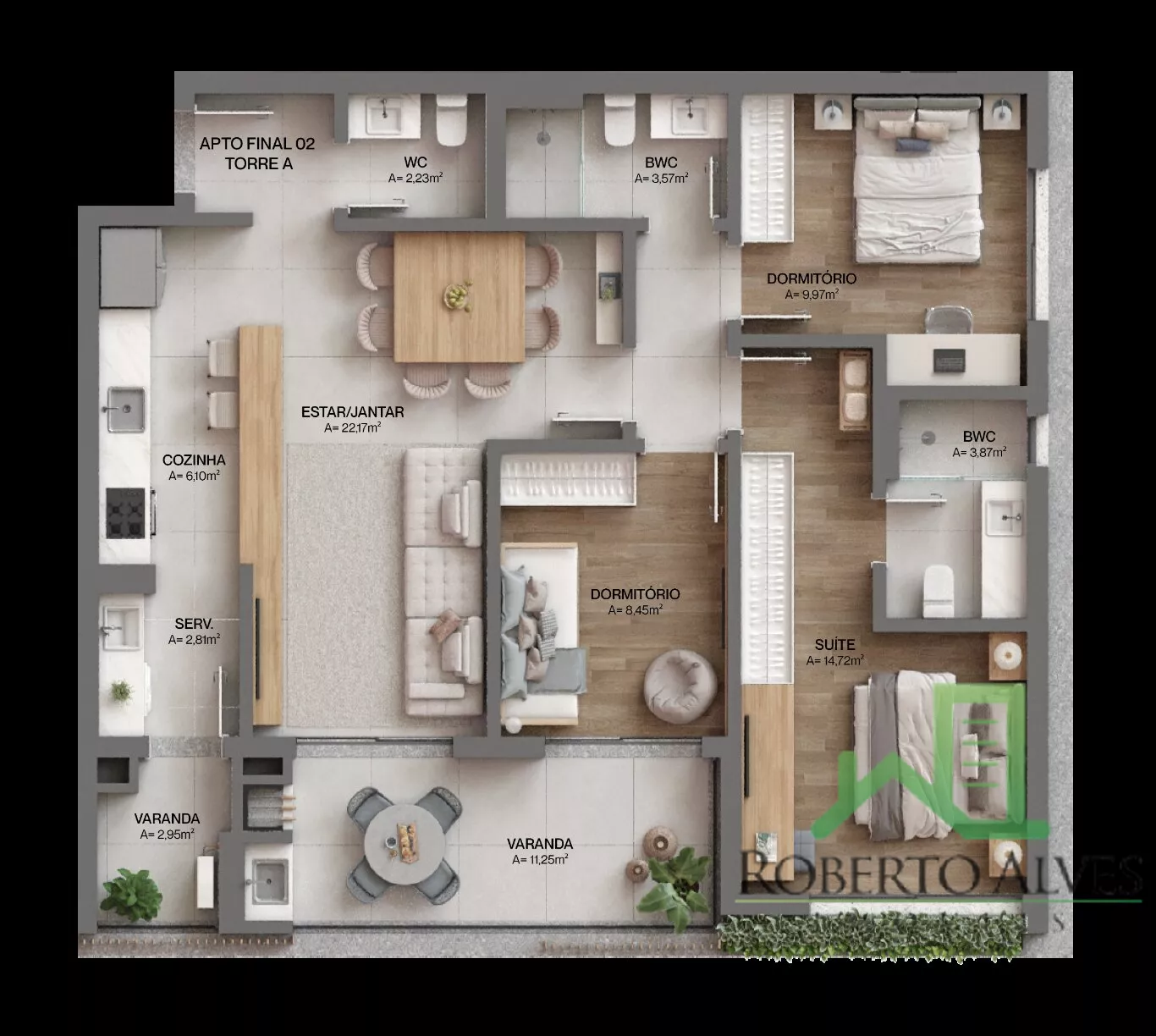 APARTAMENTO COM 104,97m², 3 DORMITÓRIOS (1 SUÍTE) + LAVABO + 2 VAGAS DE GARAGEM + 2 HOBBY BOXS