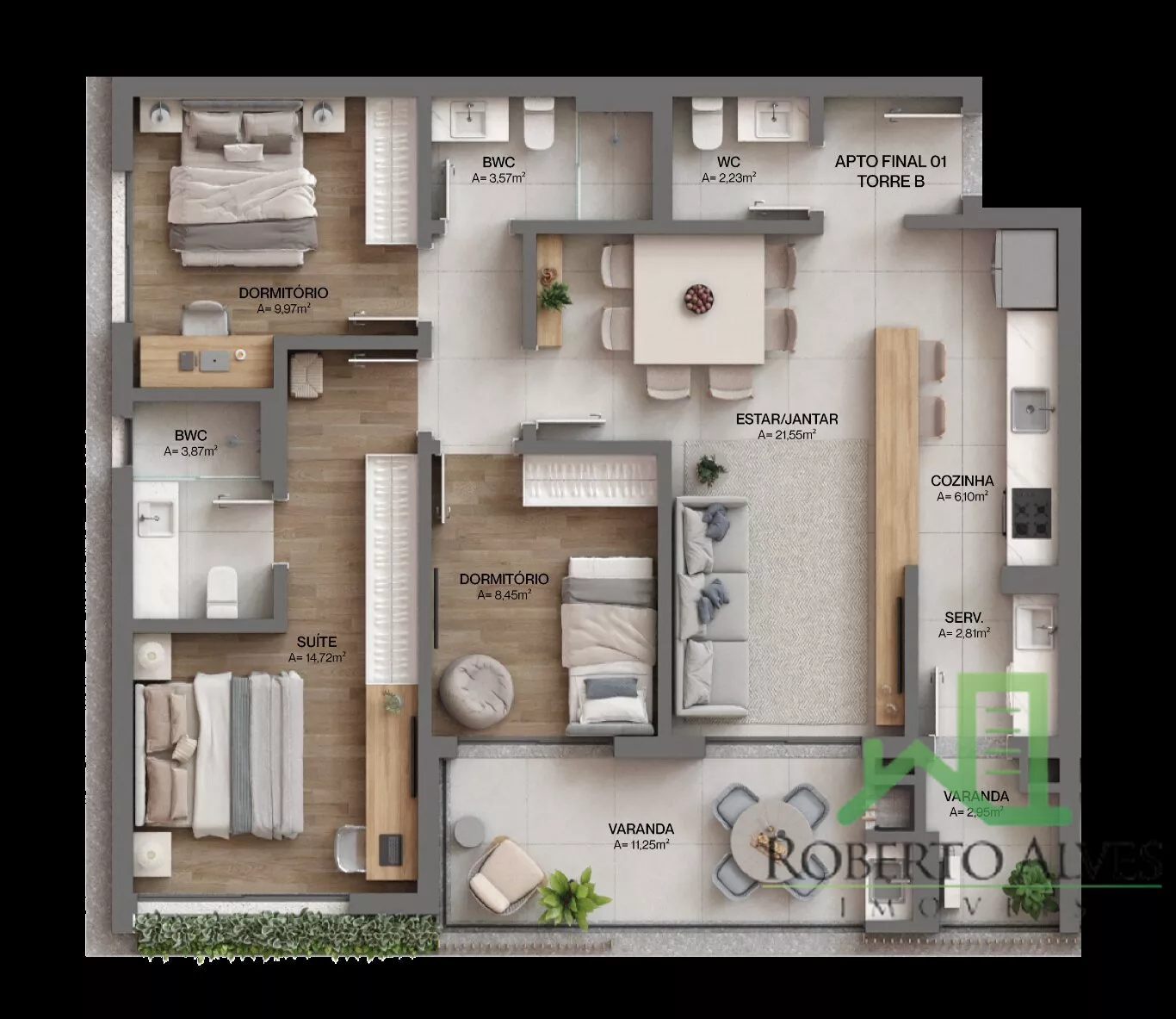 APARTAMENTO COM 104,94m², 3 DORMITÓRIOS (1 SUÍTE) + LAVABO + VAGA DE GARAGEM + HOBBY BOX