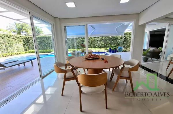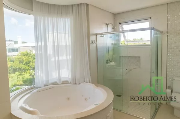A casa possui 4 suítes (2 com hidromassagem), um espaçoso home theater, um belo hall de entrada com pé direito duplo, sistema de aspiração central, uma ampla área gourmet com churrasqueira, 4 vagas de garagem e 6 banheiros. Apresenta um alto padrão de construção e acabamento, tornando-a uma excelente oportunidade de investimento. Localizada no bairro Jurerê Internacional, próxima ao bosque Amoraeville, esta propriedade de 470m² construídos, incluindo a piscina, em um terreno de 613m², está a apenas 5 quadras do mar, em uma área segura e tranquila. A residência dispõe de um sistema de segurança patrimonial, com alarmes, equipe de apoio e rondas de pronta resposta.