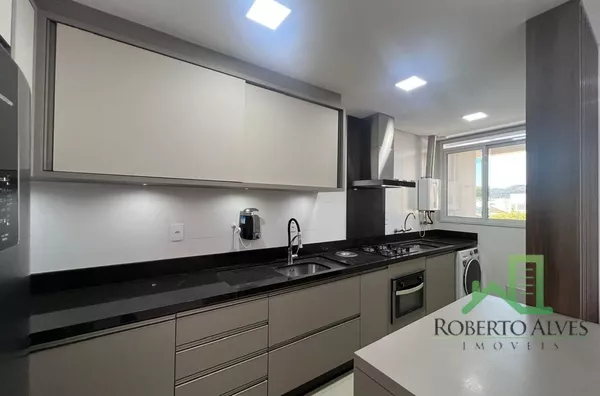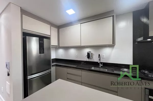 O imóvel conta com 2 suítes, sala de estar e jantar integradas, cozinha planejada, sacada com churrasqueira, além de 2 vagas de garagem e hobby box.