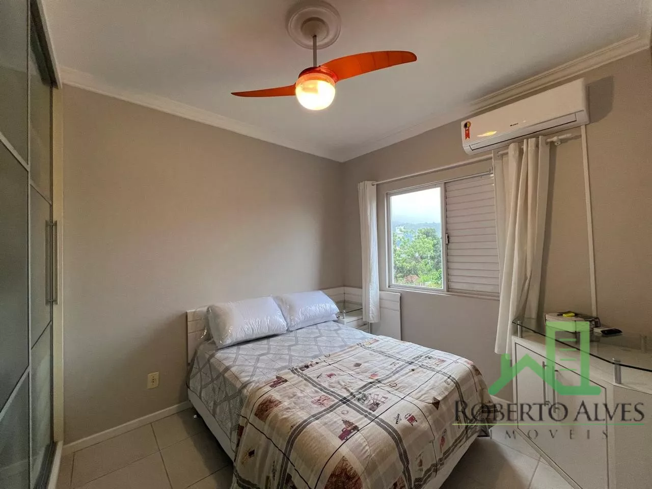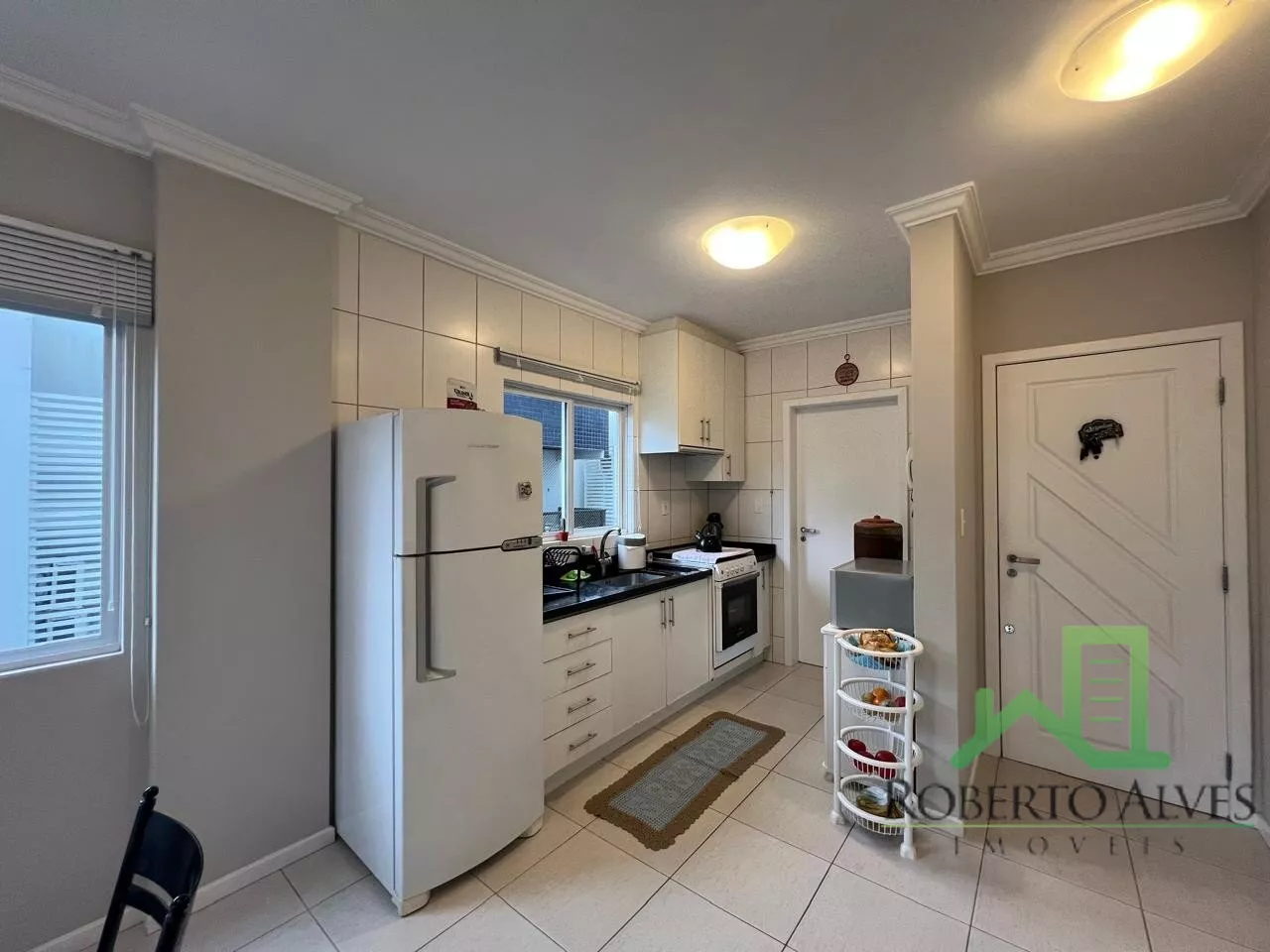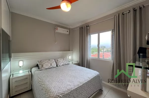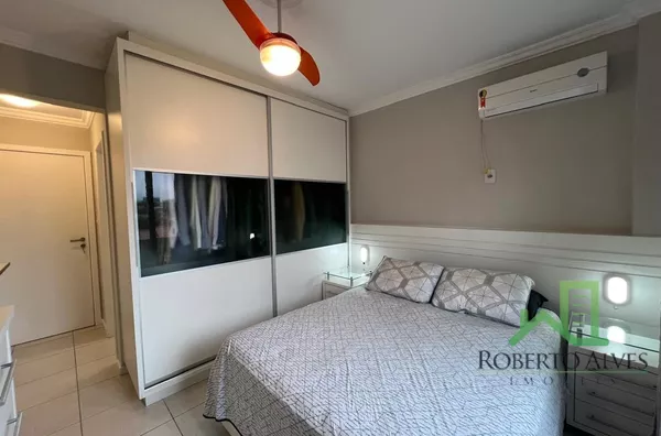São 2 dormitórios, sendo 1 suíte, banheiro social, cozinha, área de serviço, sala de estar e jantar integradas e sacada com churrasqueira.
