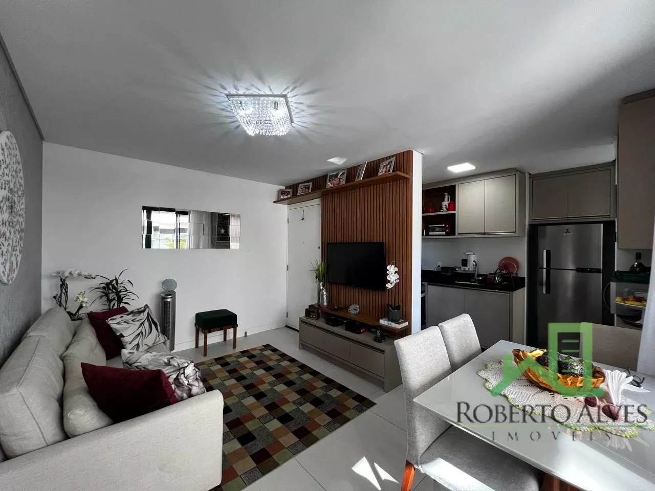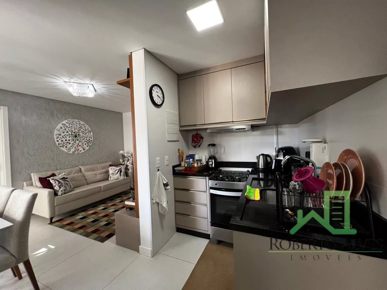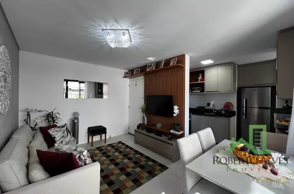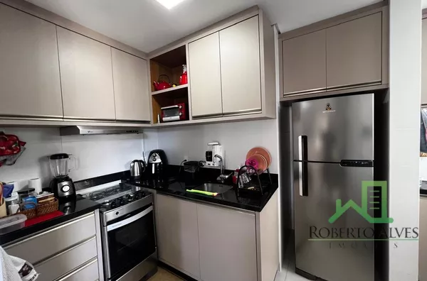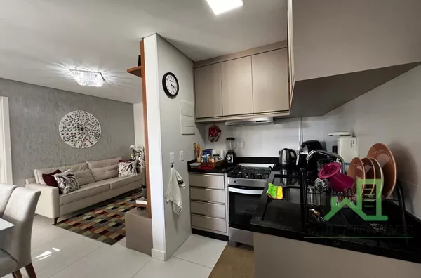 Conta com 2 dormitórios, sendo 1 suíte, sala de estar e jantar integradas, sacada com churrasqueira, cozinha, área de serviço e banheiro social.