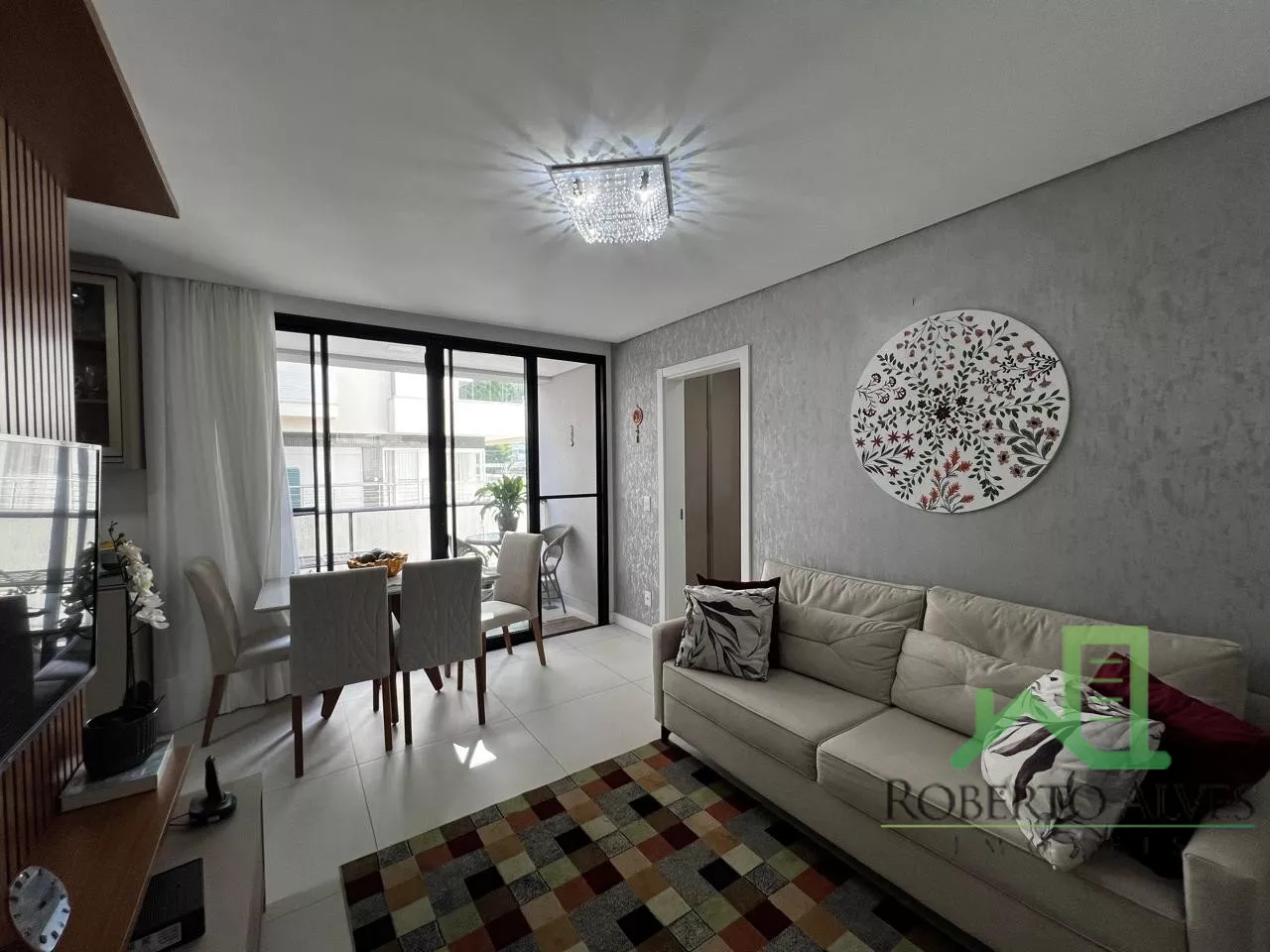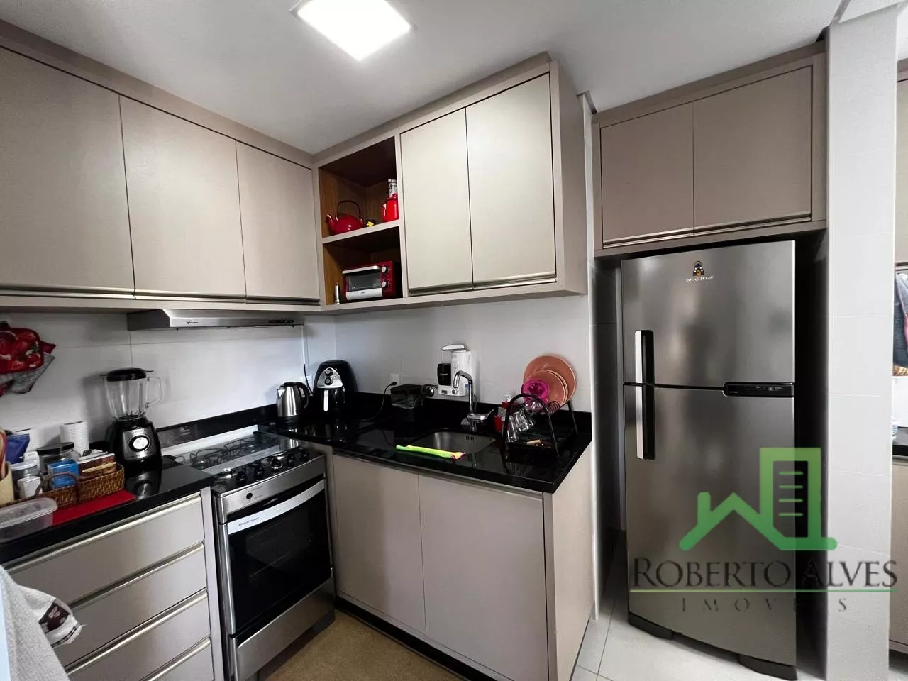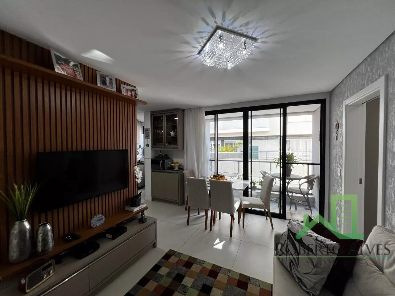 Conta com 2 dormitórios, sendo 1 suíte, sala de estar e jantar integradas, sacada com churrasqueira, cozinha, área de serviço e banheiro social.