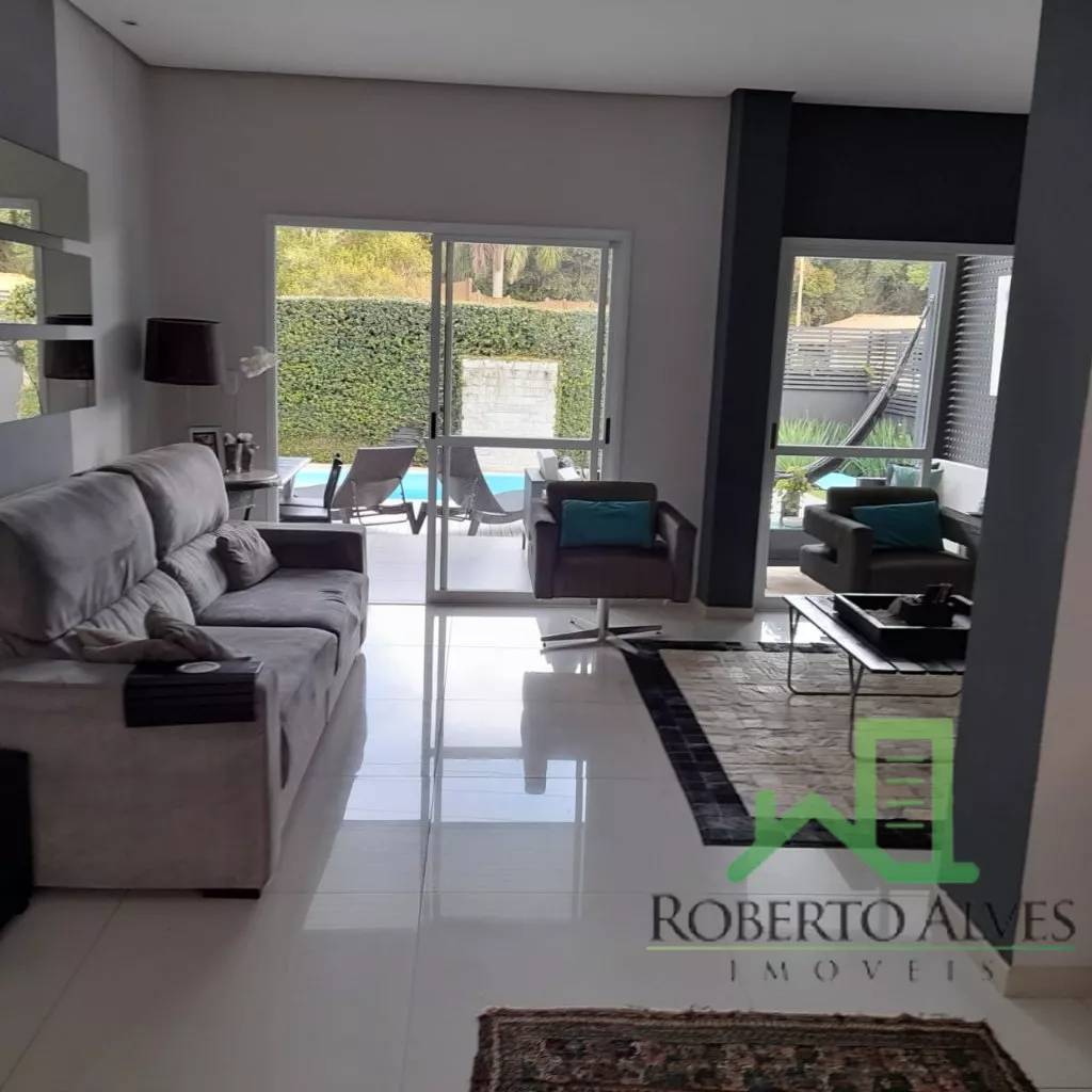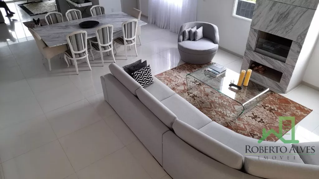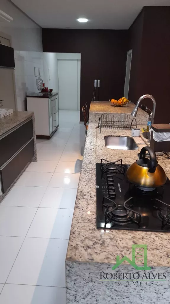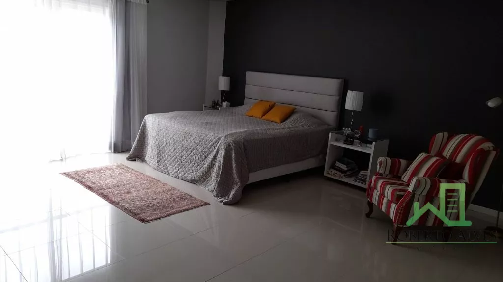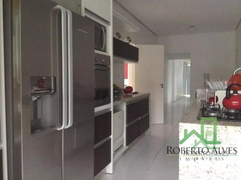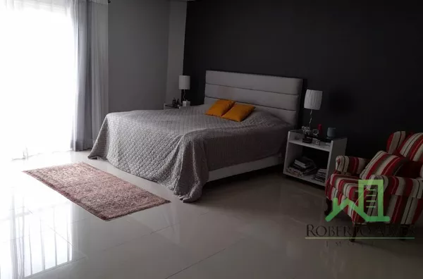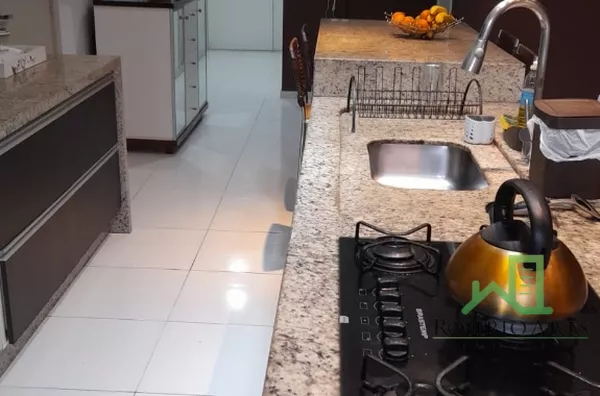4 Suítes (2 Máster c/ Hidromassagem);Sala de Estar e Jantar Conjugadas ;Sala de Televisão c/ Home-Theater; Lareira; Cozinha e Copa Integradas;Lavabo;6 Banheiros; Dependência Completa de Empregada;6 Ares Condicionados Splits; Aquecimento Solar; Área de Serviço; Sacada Varanda c/ Churrasqueira;Piscina;2 Vagas de Garagem.